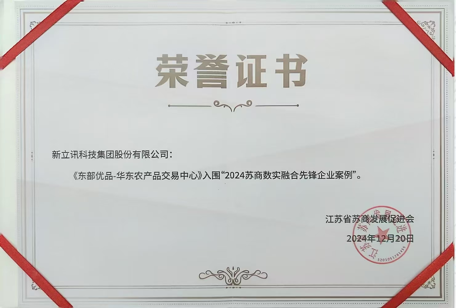 新立訊科技集團(tuán)《東部?jī)?yōu)品-華東農(nóng)產(chǎn)交易中心》入圍“2024蘇商數(shù)實(shí)融合先鋒企業(yè)案例”
