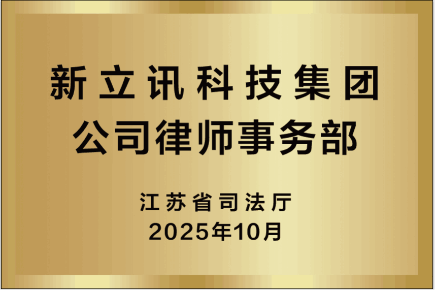 近日,經江蘇省司法廳審核批準,同意新立訊科技集團股份有限公司設立“公司律師事務部”。另江蘇省司法廳于2025年11月為事務部獲批的3名公司法律工作者下發律師工作證。