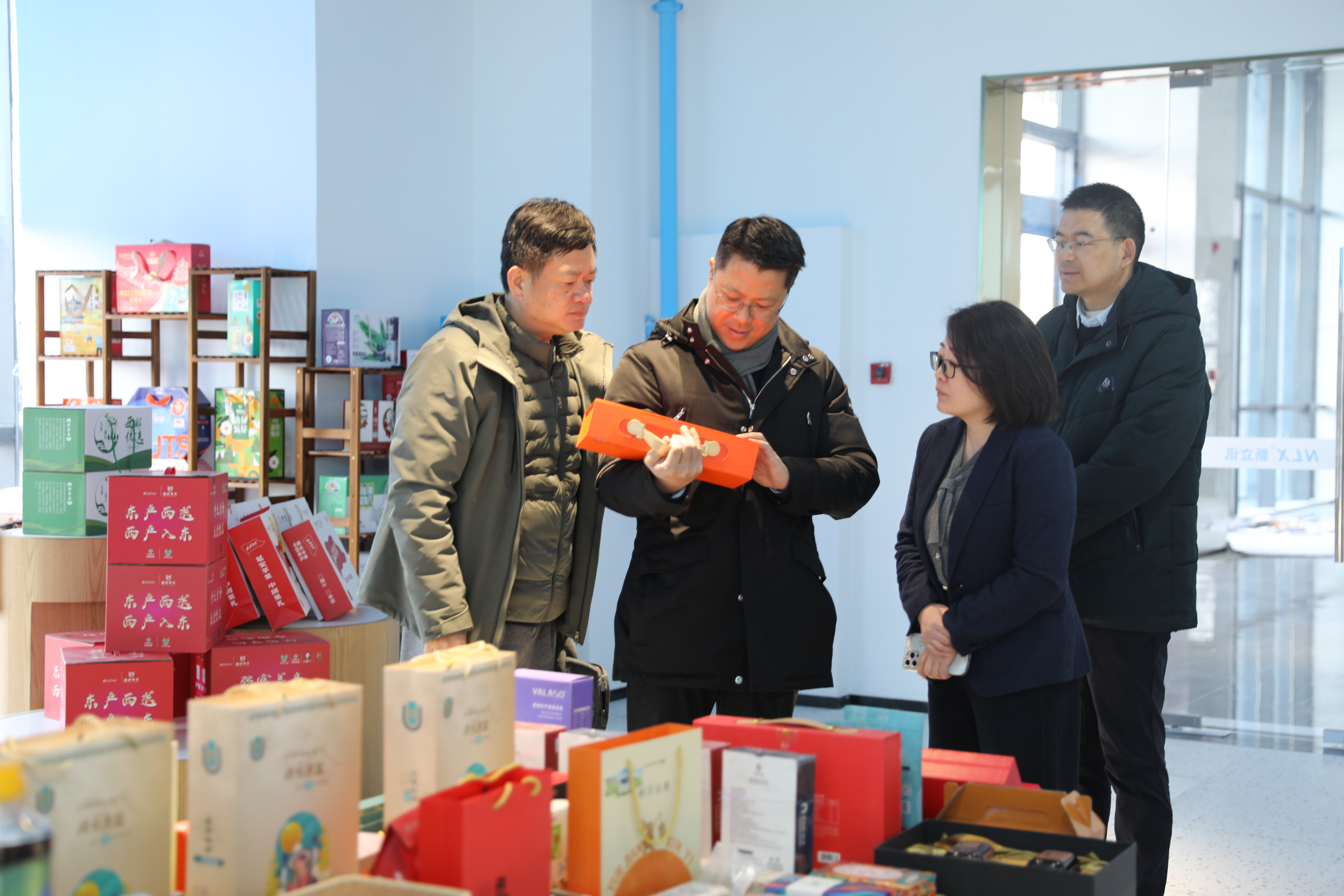 座談前,大家參觀了位于新立訊總部一層正在籌建的“東西部(蘇青)協作農產品展銷中心”,展廳由青海農特產品展銷廳與青海非遺文創(手工藝品)展銷廳兩部份組成,集中展示青海“青品好物+西部優選”系列產品:藍雀山、羊羔花、牦牛肉、藏羊肉、湟魚菜籽油、雪山牦牛奶、青海湖純牛奶、冬蟲夏草等高原特色農產。非遺文創區目前正在緊密裝修中,擬引入含西寧湟中區八瓣蓮花、藏式銀銅手工制品、海東互助青繡、黃南州熱貢唐卡、海南州藏繡、葫蘆雕、玉樹果洛藏刀、泥塑等藏文化特色商品等。