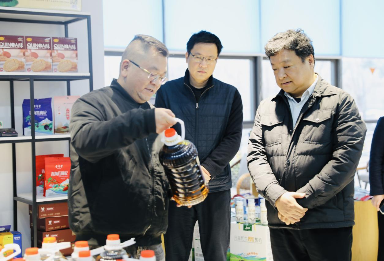 座談前,大家參觀了位于新立訊總部一層正在籌建的“東西部(蘇青)協作農產品展銷中心”,集中展示青海“青品好物+西部優選”系列產品:藍雀山、羊羔花、牦牛肉、藏羊肉、湟魚菜籽油、雪山牦牛奶、青海湖純牛奶、冬蟲夏草、沙棘等高原特色農產。