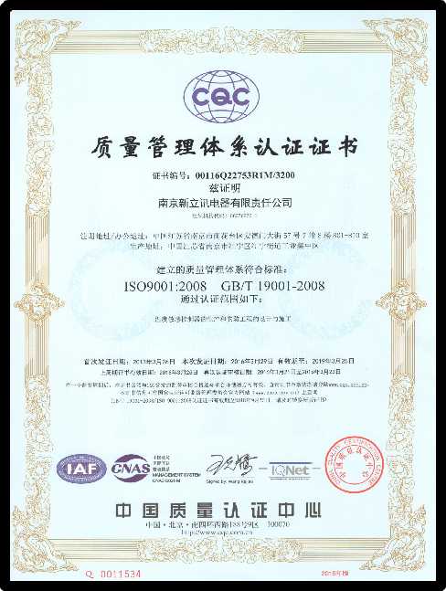 質量管理體系的建立和貫徹運行,將有助于新立訊完善管理流程,提高運營效率,也為進一步的市場開拓提供了強有力的支撐,同時綜合提升新立訊企業整體形象及核心競爭力。至此,新立訊企業主要經營項,均通過ISO質量體系認證