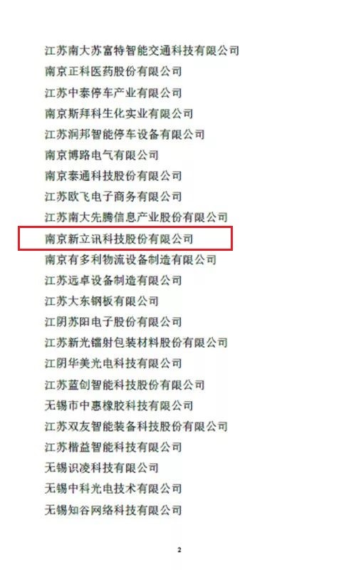 2017年12月1日,公布了2017年度江蘇省最具成長性高科技企業100家名單,南京新立訊科技股份有限公司等一批優秀的科技型企業榮獲2017年度江蘇省“最具成長性高科技企業”稱號。