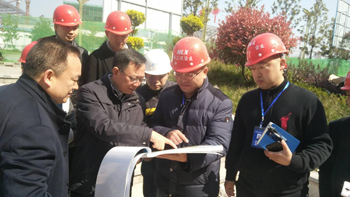 2018年3月22日早晨,遵義市政協副主席兼湄潭縣委書記魏在平等領導一行在新立訊董事長毛霖及相關項目部技術人員與工作人員的陪同下視察茶葉交易中心項目現場。